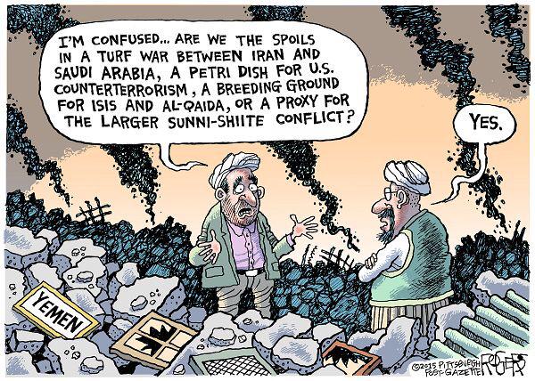 De oorlog Iran--SA begon, en die met Al-Qaida en IS was er al. Het MO gaat nu echt in open conflict. Iran waarschuwde al.. en met hun die Hezbollah uit Libanon, Hamas uit Gaza en de alouiten van Syrië (Assad) en nu ook Jemen… En Kerry en het westen + Rusland praten met Teheran over kernwapens en er kwam een omstreden verdrag. Tot grote schrik van Israël maar tot vreugde van de smachtende EU-landen met hun kleine groei..